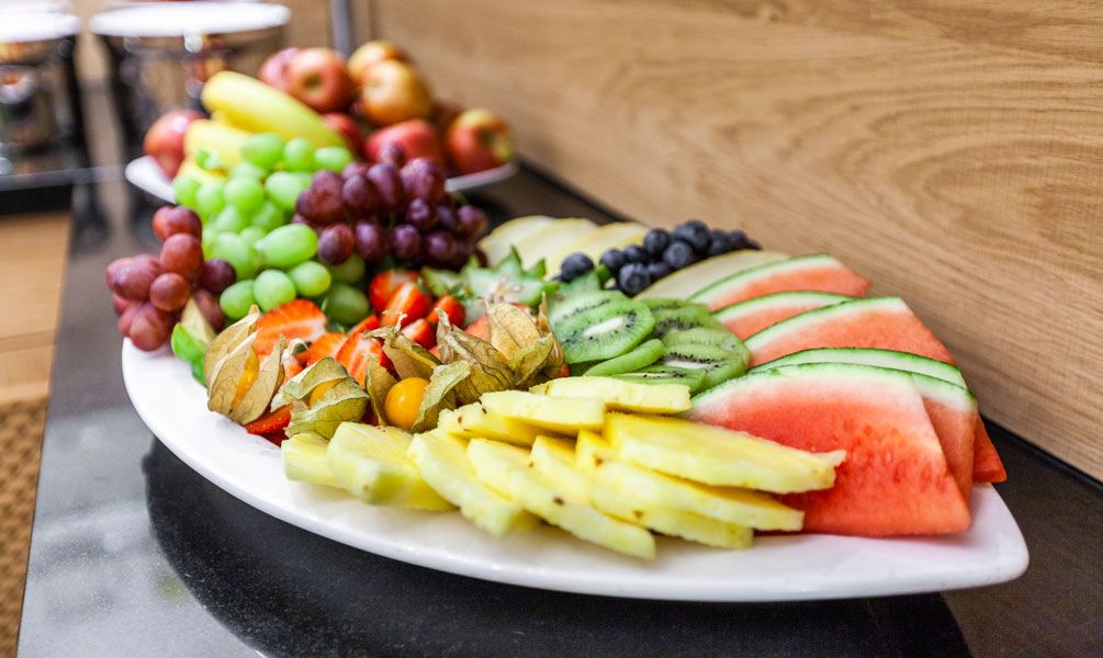 Jeden Morgen erwartet Sie unser reichhaltiges Frühstück, das Ihnen für einen erfolgreichen und schönen Tag den richtigen Start gibt. Genießen Sie knuspriges Müsli, leckere Joghurts, fruchtige Marmeladen, Honig, verschiedene Käse- und Wurstsorten, Speck, Fruchtsäfte, frische Brotwaren, knusprige Croissants und viele weitere Leckereien. Dazu stehen frisch zubereitete Kaffeespezialitäten sowie diverse Tees bereit.